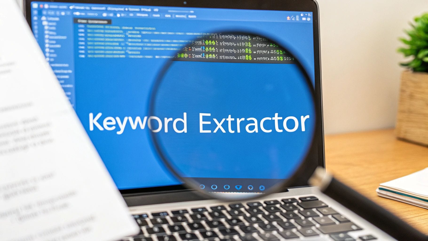 Let's be honest—nobody wants to manually sift through thousands of customer reviews or competitor articles to spot key themes. It's a soul-crushing task. This is exactly where a keyword extractor from text comes in. Think of it as your automated assistant, built to instantly pull the most important terms and phrases from any block of text you throw at it.